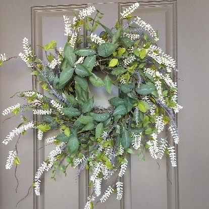 In the coming days, I didn’t pay much attention to our door until a small head protruding from the top of the wreath caught my eye. Yep, the top, not the middle where I had exposed her previous home.