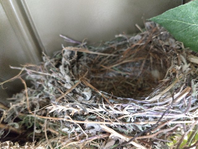 I noticed nesting material on the doormat, a few feathers scattered on the driveway, and more dry grass on the front porch. Had they left again without saying a word?